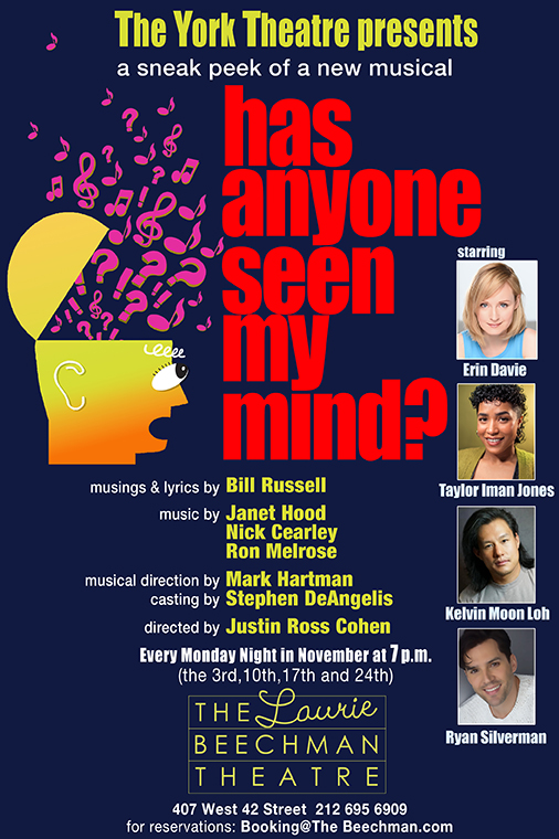 come see the sneak peek of HAS ANYONE SEEN MY MIND? at the wonderfully renovated Laurie Beechman Theatre every monday in November!